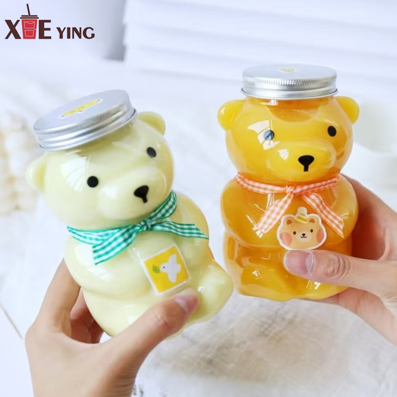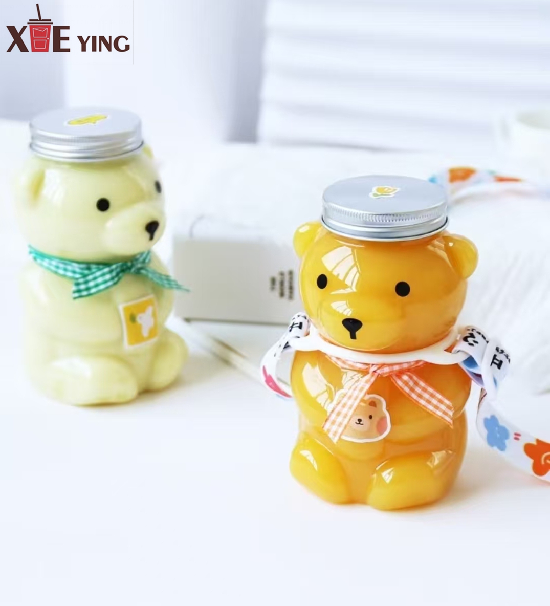 500ml Hot Selling PET Food Grade Bear Animal Shaped Water Bottle for Milk Tea Juice Coffee